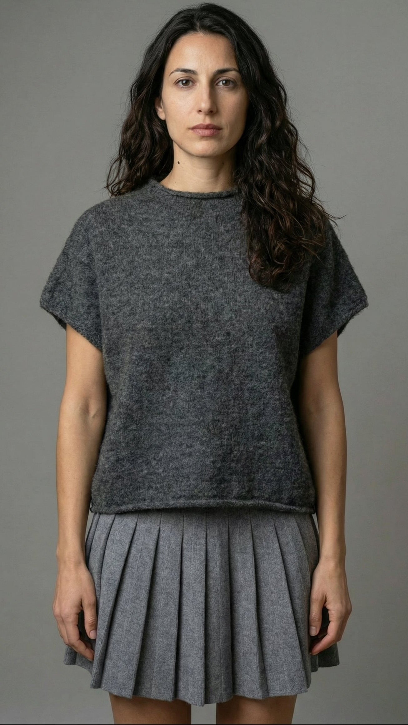 Completo Gilet e Gonna Pieghe Lana Grigio Antracite