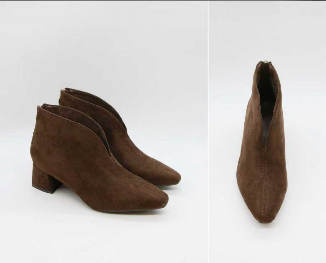 Aggiungi un tocco di raffinatezza minimal al tuo look quotidiano con questi stivaletti in simil camoscio marrone. Il design è studiato per unire eleganza e praticità: il particolare scollo a V sul collo del piede non solo aggiunge un dettaglio di stile unico, ma aiuta visivamente a slanciare la gamba. La cucitura centrale dona struttura alla scarpa, mentre il tacco basso a blocco assicura una camminata stabile e confortevole da mattina a sera.